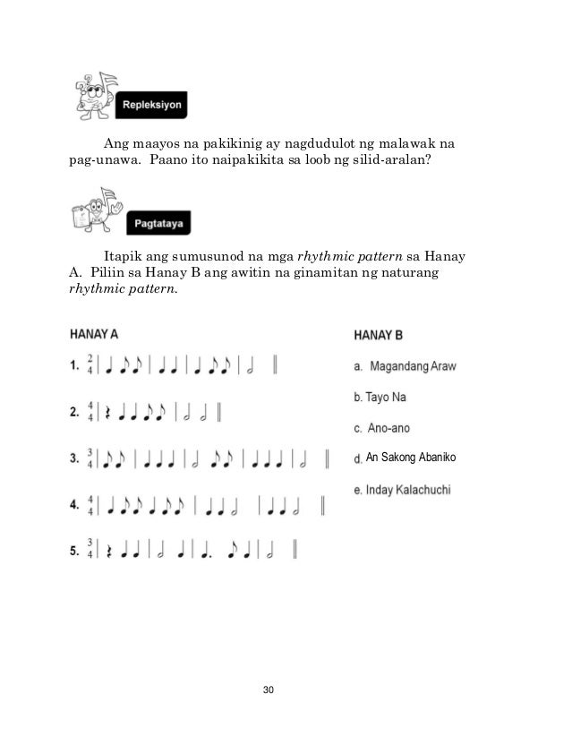 In day In day sa ba li taw Ituloy mo. Answers zithers harps lutes musical bows and lyres Whats More In this activity you will analyze the given six folk songs by completing thetable. Ano ang tawag sa quarter note na baliktad.