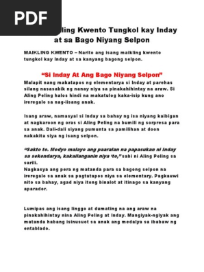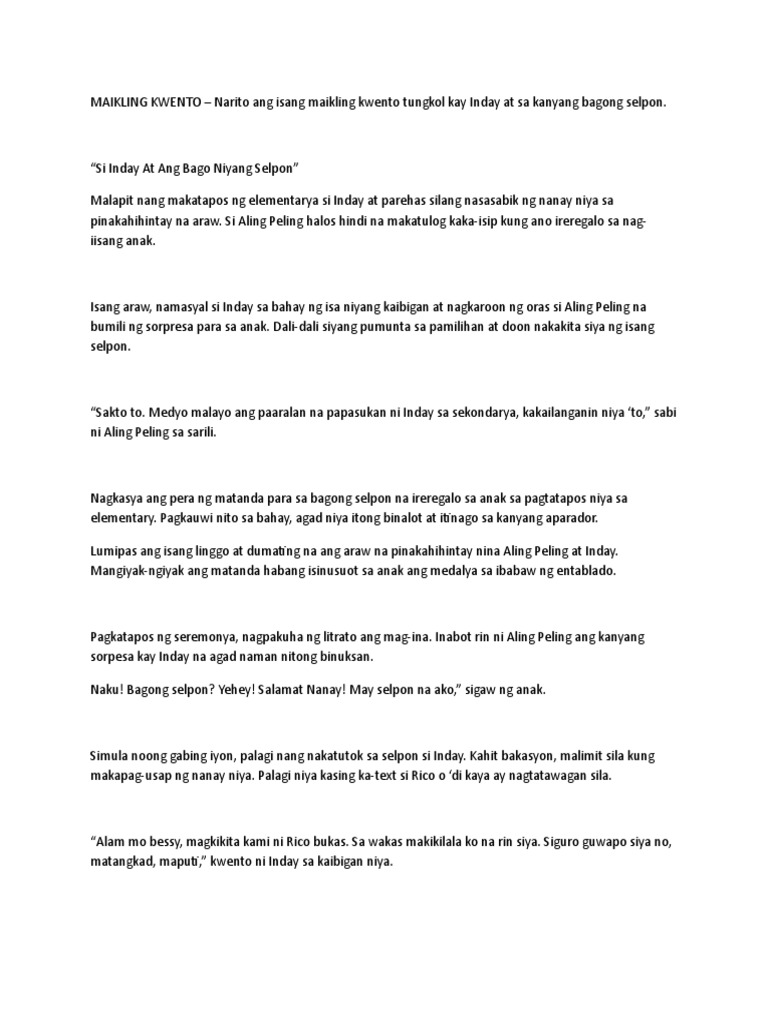Ang Maikling Kwento Tungkol Kay Inday At Sa Bago Niyang Selpon Docx