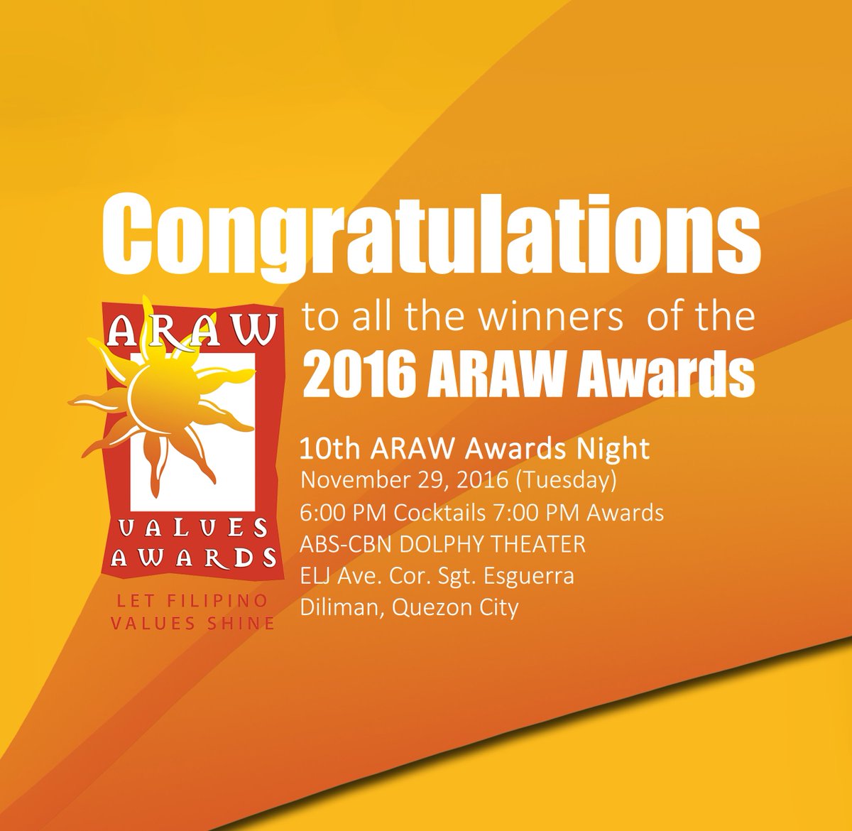 THE AD Foundations Araw Values Awards is the only competition in the whole world that recognizes the importance of values in creative and marketing communications that advocate the 7 Cornerstone Values namely 1 Love of God and respect for all religious beliefs. February 26 2020 AT 0114 PM. 31 2020 with a nationwide telecast special to be aired by the network in mid-February and with global feeds thereafter through the TFC in 7 territories worldwide.