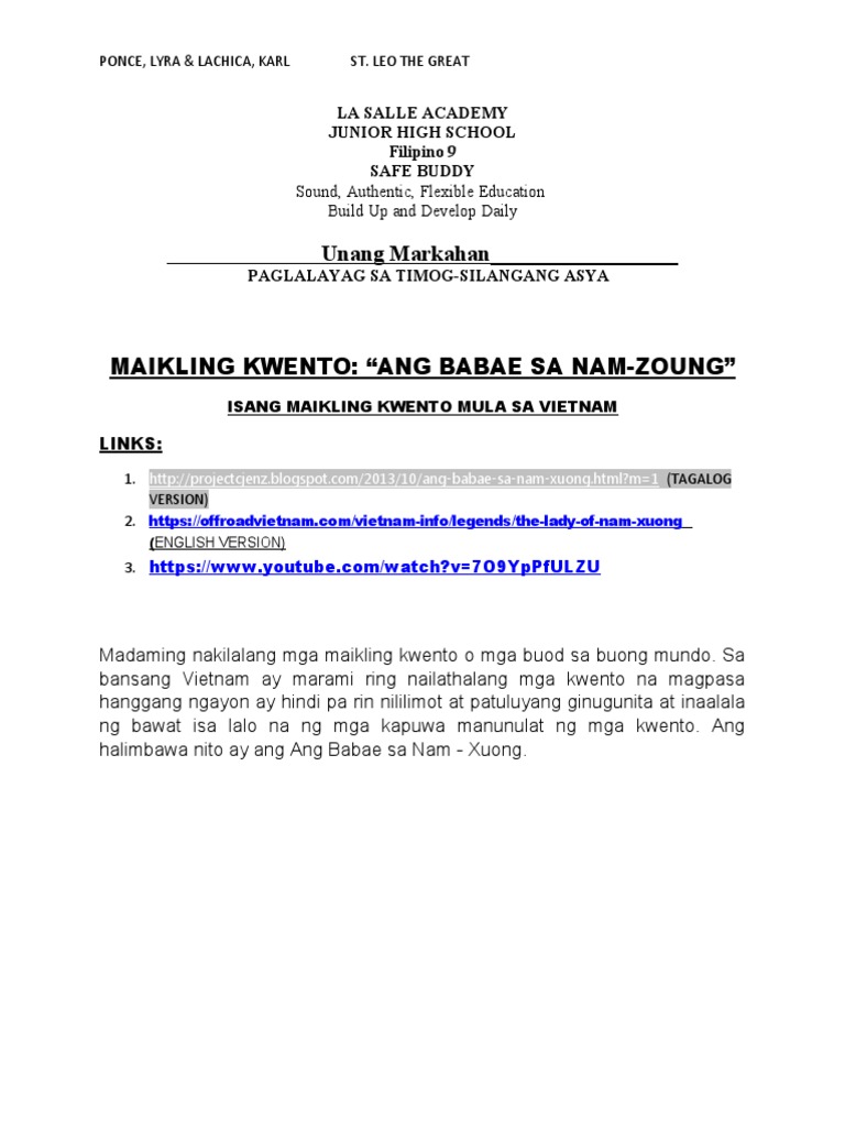 Mga Halimbawa Ng Maikling Kwento Sa Silangang Asya