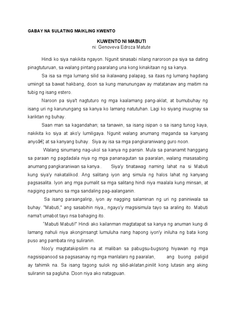 Ganoon ng ganoon hanggang sa magsawa si Juan sa pagtatangka at ipinasya niyang magpatuloy sa paglalakbay. Maikling kuwento Mula sa Tagalog na Wikipedia ang malayang ensiklopedya Ang maikling kuwento - binaybay ding maikling kwento - ay isang maigsing salaysay hinggil sa isang mahalagang pangyayaring kinasasangkutan ng isa o ilang tauhan at may iisang kakintalan o impresyon lamang. 16112018 Ang Maikling Kwento Tungkol kay Alas at sa Ginintuan Niyang Puso.