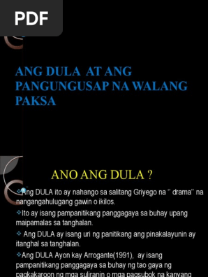 Ang mga tauhan ay nagsusuot ng angkop na damit at ang mga kilos mga tauhan ay ibinabagay sa papel na kanilang. Kalimitan ginagamit nila ang mga dulang dekada o maging daangtaon na ang tanda na hinango sa Biblia at sa tradisyon at isinulat sa anyong poetiko. 01042021 MGA KAHULUGAN SA TAGALOG.