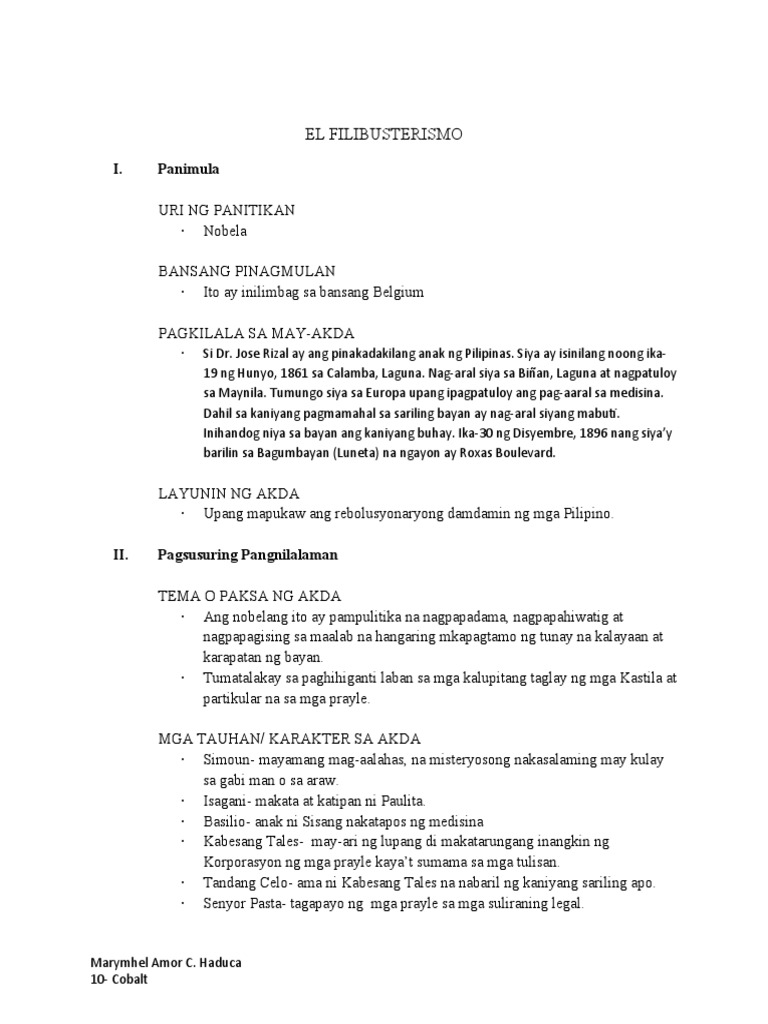 Pagsusuri Sa El Filibusterismo